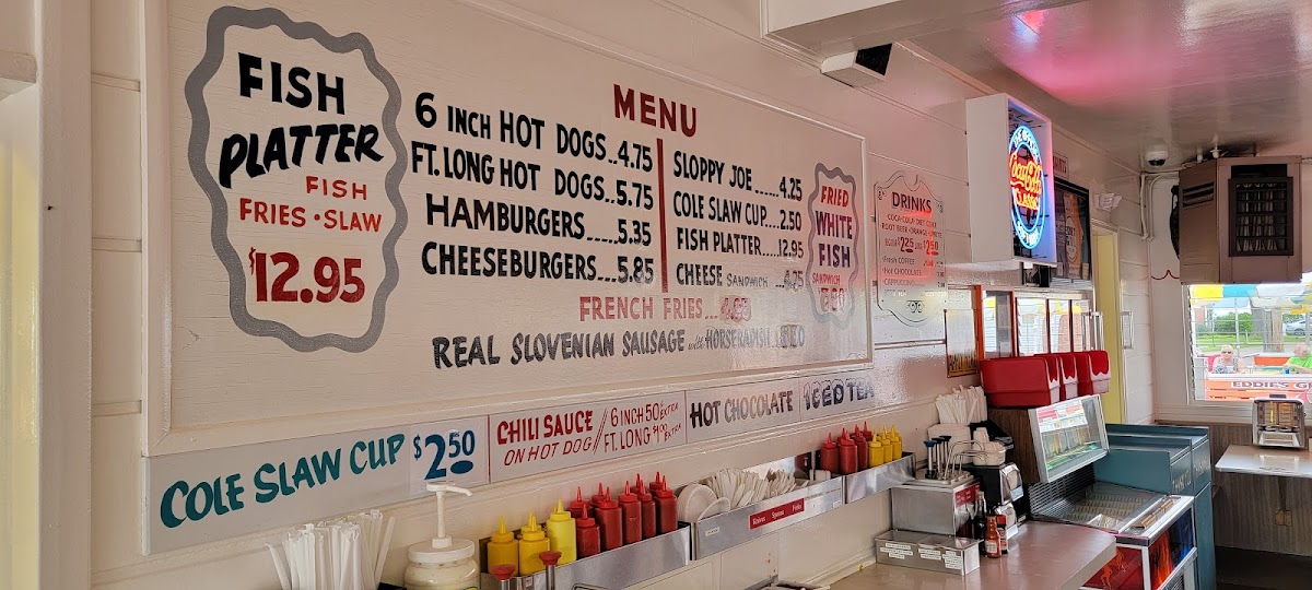 Welcome to Eddie's Grill, a nostalgic culinary gem located at 5377 Lake Rd E, Geneva, OH. This charming diner captures the essence of classic 50's beach diners, complete with an inviting atmosphere and jukebox tunes. The menu is a delightful mix that ensures there's something for everyone, from their legendary footlong hotdogs to the hearty sloppy Joes.
